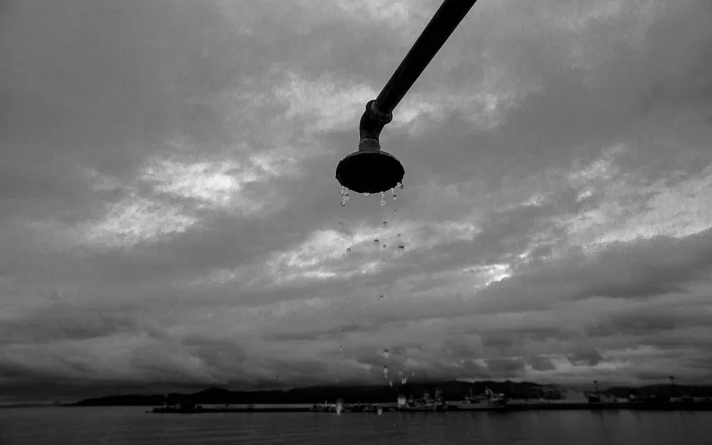 κάθομαι και κοιτάζω το νερό της βροχής στο πλακόστρωτο